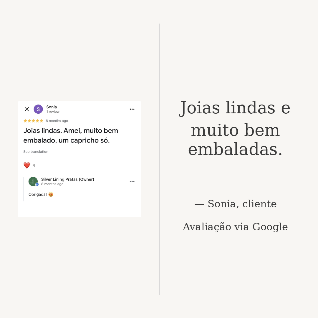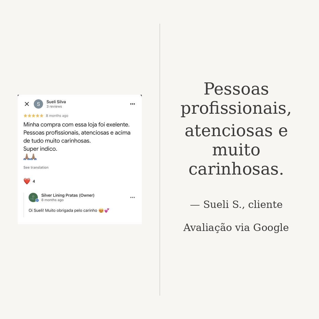 Veja o que nossas clientes dizem sobre a Silver Lining Pratas ®